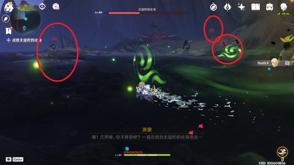 接下来进入战斗状态,只能使用旅行者进行战斗,注意不要传送走了,否则会重新进行挑战