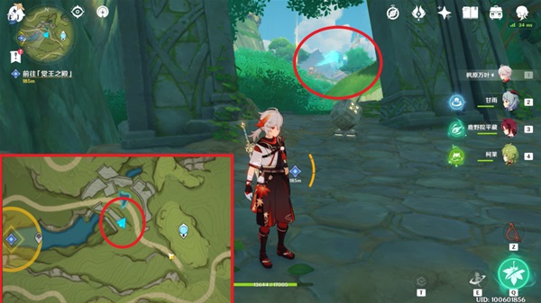 ①:召唤草种子击破两处石头后可见两个草元素方碑
