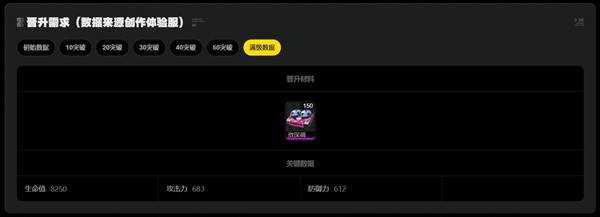 专属音擎1-50级突破材料:丁尼×20万、音擎能源模块×100、击破组件×4、增强型击破组件×32、特化型击破组件×10
