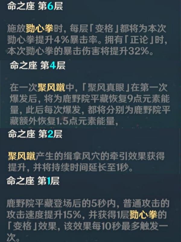 鹿野原平藏拥有不错的速切爆发能力,主要伤害能力依靠自身风系直伤,是为数不多不依赖精通的风系角色。