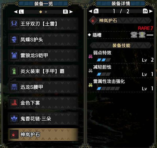 首先请看使用雷狼龙双刀作为武器的[雷属性]双刀配装: