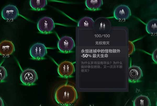 迷城天赋优先点满怪物额外生命减少,这点非常重要可以让你打的更快。其次点怪物伤害减少。这条能多一点算一点吧。