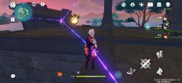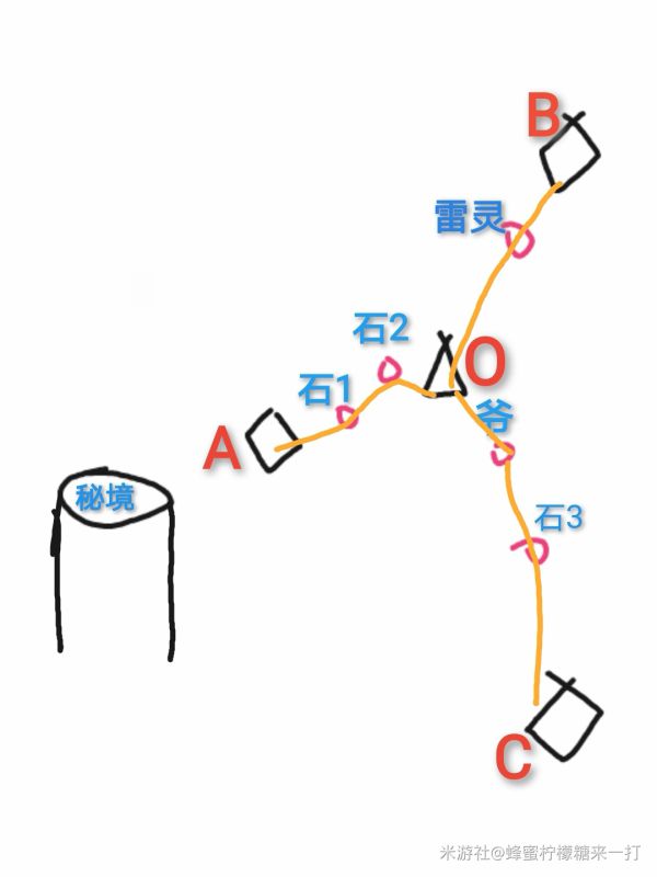 可以让人物带着继电石3号,在O点和雷灵中间沾上雷附着状态,在和C点拉扯连线到极限位置的时候再把身上的3号继电石放下来