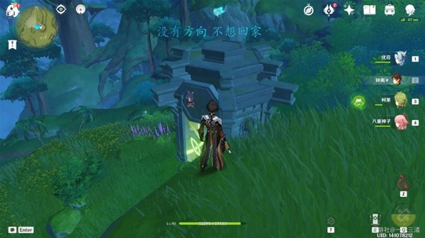 这个就比较简单了,就在锚点旁边,这个锚点的解开,我建议是从上方的七天神像使用四叶印飞过去,上面还有一个仙灵。