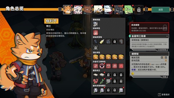 尽在战斗形式上更可能更倾向于横版肉鸽,不过《异界失控》在养成内容上挺RPG的,就单个角色而言,包含了:初始技能、初始特性(被动)、领队特性(只在做领队时生效的被动)、升级技能(随机roll一个)、升级特性(随机roll一个被动)、属性修正(被动)、额外槽位(被动)。