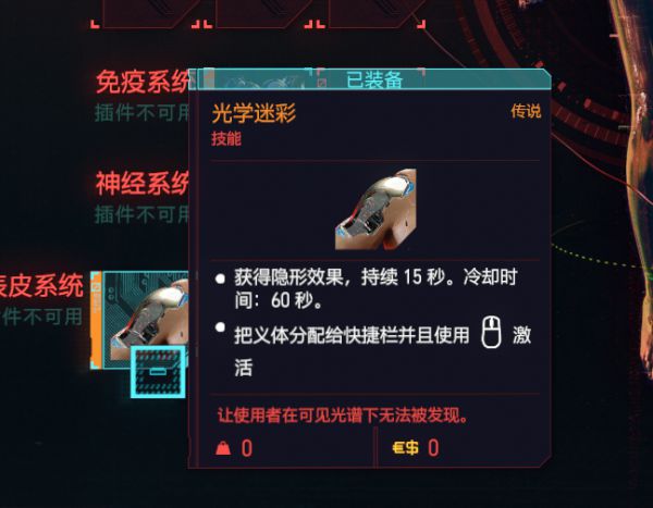 1.橙色的迷彩15秒时间,60秒CD,没有插槽,能吃到那个所有-30%义体CD的改造