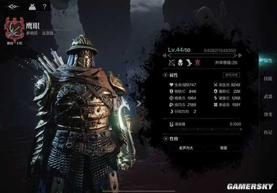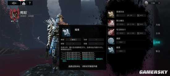 首先这是我眷二44级鹰眼属性,我实在是比较懒没怎么刷升华,铭文也懒得好好刷精准,所以面板上只有1964的精准,但是为什么能打4000速的元帅呢?这就要依托鹰眼的被动2以及技能了。