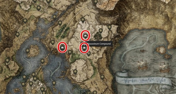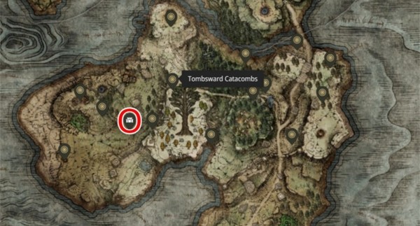 位于宁姆格福-啜泣半岛,来到半岛西侧,在赐福“玛莉卡第四教堂”与“灵庙原野”中央可以找到这个漫步灵庙。