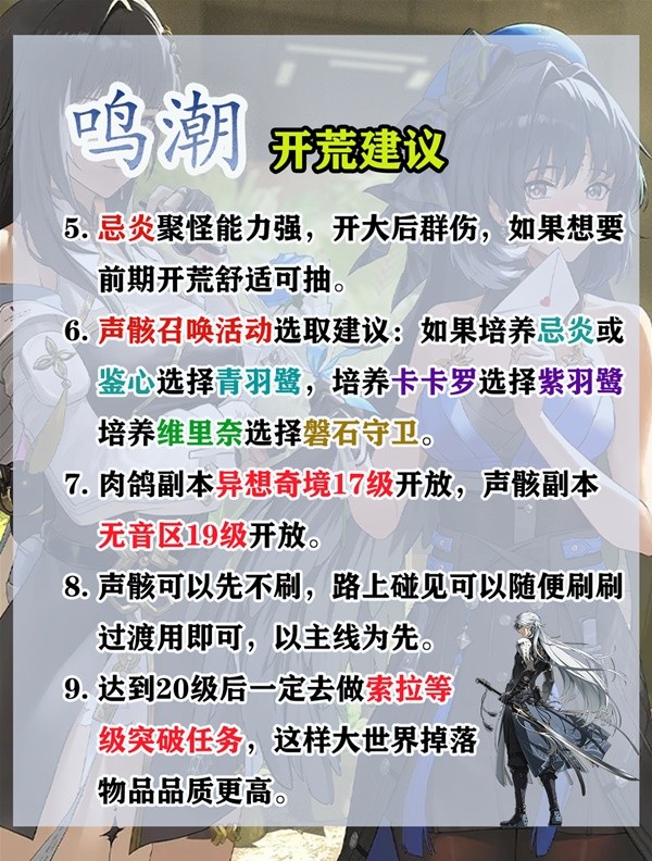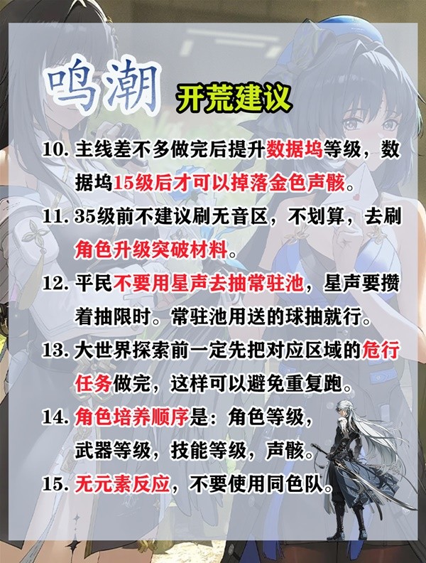 正文 《鸣潮》公测开荒建议「超实用」 游戏新星 /2025-08-05 11:29:06 /29 浏览量 0805 《鸣潮》现已开启公测,游戏初期开荒是非常重要的,那么在开荒的时候玩家有哪些注意事项呢?下面请看由“鸣潮轩儿”为大家带来的《鸣潮》公测开荒建议,希望可以帮助到大家。 问何日藕、几时莲。 -- 展开阅读全文 --