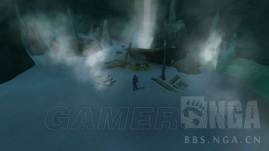 这个时候就去岛的南边找一个被石头封住的洞穴(58.5,54.0),怎么进去呢?旁边有个boss级的怪物,拉过来在洞口自杀,然后跑尸体(横跨整个岛)进到洞里面再复活,然后在洞的尽头有一个不起眼的黑黢黢的泥土堆;