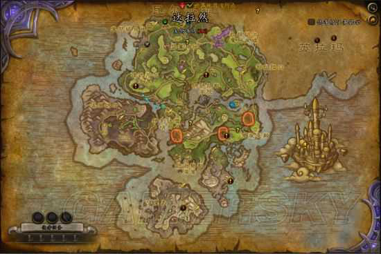 从达拉然东边的飞行平台缺口跳下去,滑翔或者游泳到破碎海滩。然后在西南海角凹进去的地方就可以看到这个老家伙(37.4,71.6),跟他说话一直到让你滚开(态度真心差,一点也不像求人办事);