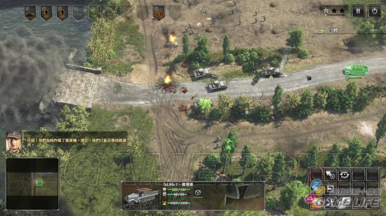 以实际游玩的内容来说,《突袭4》依然是一款非常标准的实时战略游戏,玩家可以选择一次选取部分兵力来安排战略位置,或是利用快捷键来分配不同的小队,而身为一款实时战略作品,当然也可以一次选择所有的兵力同时往前进攻,但每个兵种、载具都有着各种不同的资源,像是医疗兵可以治疗受重伤的士兵,而通常都会跟在队伍最后方的资源车则可以负责修复受损的战车或是搭建桥梁让全体兵力可以顺利渡河。