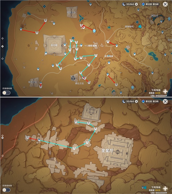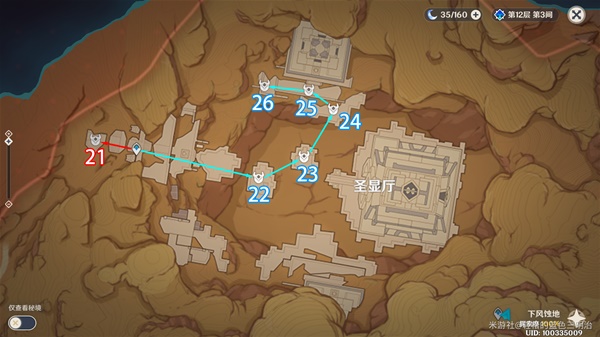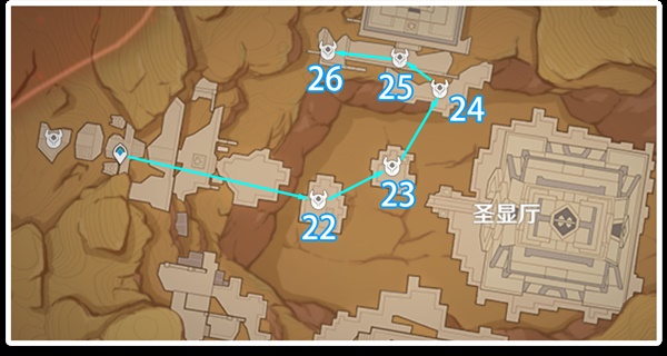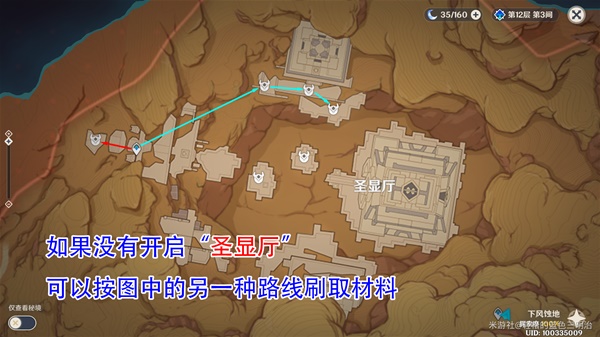 “圣显厅”需要完成世界任务才能开启。如果没有开启,可根据图中路线刷取