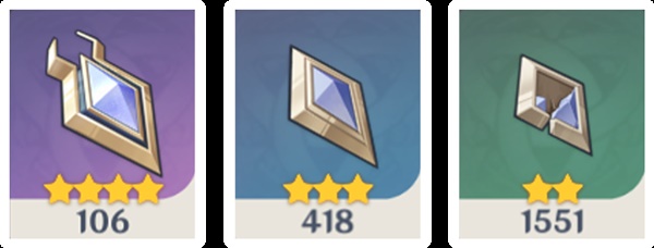 截至 3.2 版本,已知使用「棱晶」进行升级突破的武器有: