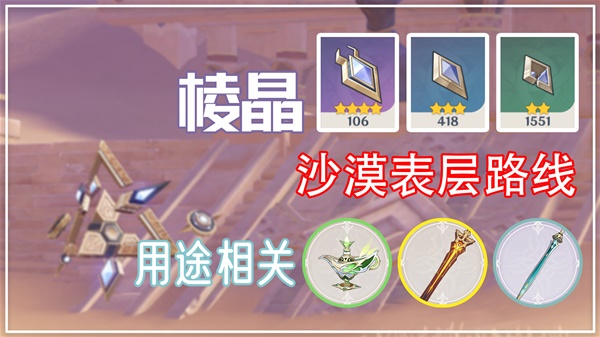 《原神》中的元能构装体在被击败后会掉落棱晶素材,可以用来进行即将上线的新武器千夜浮梦突破。下面请看由“轻松的蓝色三明治”带来的《原神》元能构装体沙漠表层讨伐路线分享,一起来看看吧。