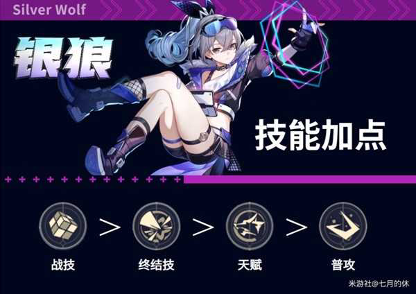 是银狼的核心机制技能,为队伍增加破盾能力和提供减抗增伤,结合天赋和额外能力,能触发对敌人施加几乎所有的debuff效果。