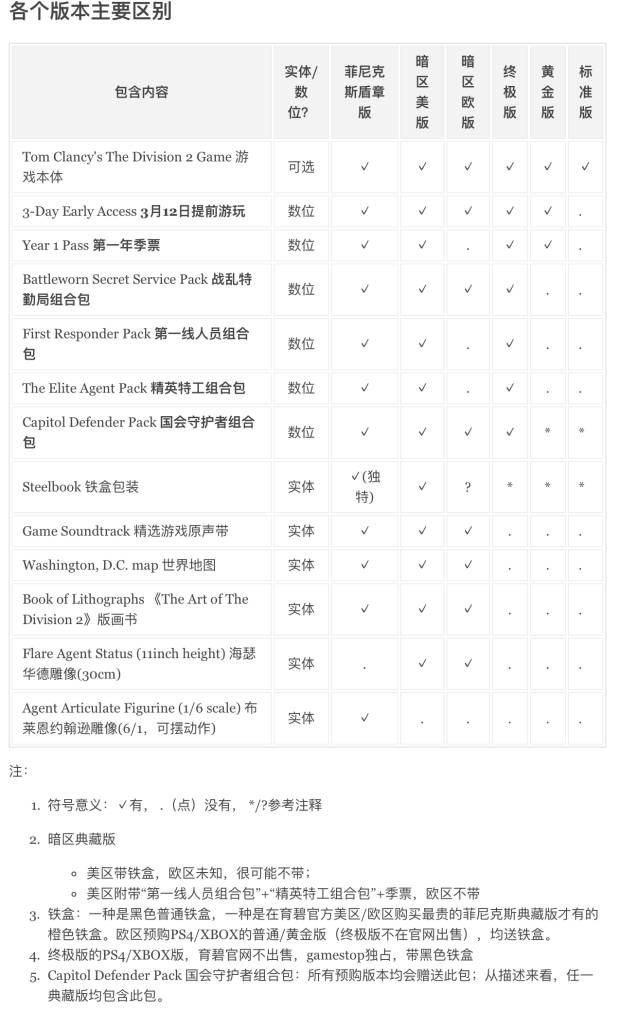 《全境封锁2》版本还是比较多的,且购买之后给予的奖励也不同,下面小编带来“bitlilin001”分享的《全境封锁2》各版本区别及预购奖励一览,废话不多说,赶紧来了解一下吧。