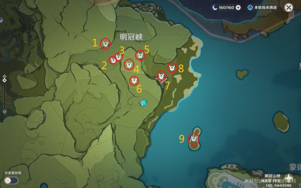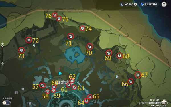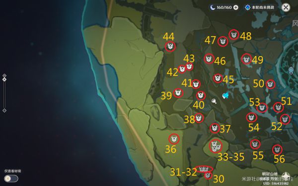 明冠山地共86个宝箱,位置如图:
