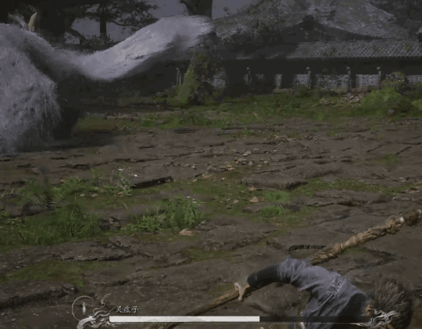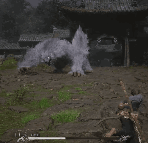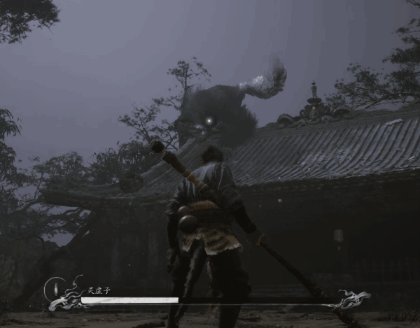 消耗灵虚子的血量会固定触发两次房顶飞扑,灵虚子爬上房顶并稍等片刻后一个短暂的停顿直接冲到玩家所在位置造成一个小范围的打击效果,观察落点时间直接翻滚躲避即可。