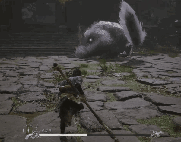 灵虚子将两手抬起,然后将嘴斜到地面咬向玩家,咬的时候还有一个突进效果,最好是往两侧翻滚以给自己最大的容错率,看到灵虚子抬手的瞬间就要做好翻滚的准备。