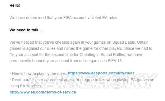 有网友应该是尝试了这种方法,然后收到了EA的信,被BAN了!!