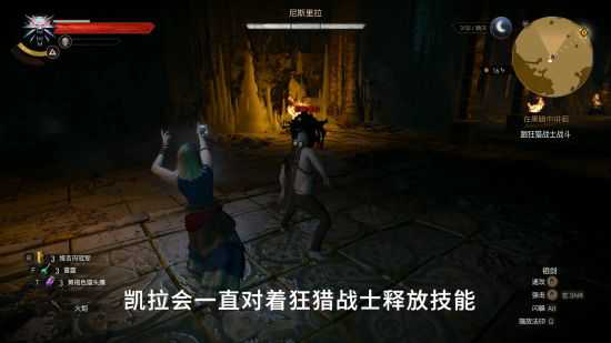 《巫师3》的流程中,玩家需要跟随开啦寻找希里的踪迹,在最后会与一名狂猎战士战斗,很多玩家这个时候并没有什么比较好的装备,等级可能也不是很好,所以硬碰硬的话很容易吃亏,请看下面的《巫师3》狂猎战士超简单打法说明,希望对大家有用。