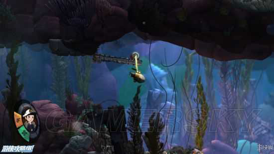 用3D的画面来展现横版游戏中的奇幻世界,笔者其实是不太喜欢的,因为它通常没有2D的画面来的纯粹和富有质感。但是在这款游戏中,笔者看到了一个层次分明, 变换莫测的海底世界;小潜艇在满是海草的海底世界穿梭,来到沉没在深海之中的神秘遗迹,又去到漆黑深邃的未知地域。在画面中玩家不但能将关卡中景色净收眼底,同时画面还将关卡的设计向着远景做了一个延生,使关卡看上去更像是整个海底世界的一部分。