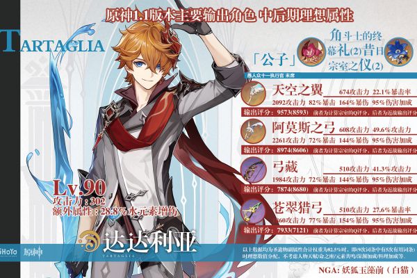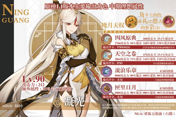 《原神》1.1版本的各输出角色该如何配装,毕业装备又该如何选择,在这方面有疑惑的玩家请看下面“”分享的《原神》1.1版本主要输出角色90级毕业数据计算,希望能够帮助各位玩家。
