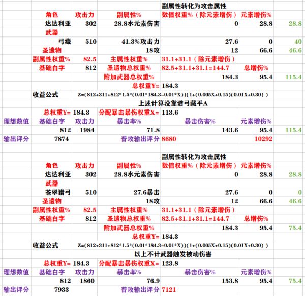 本篇所有数据均为零命之座角色和零精炼武器为模板进行计算,不会涉及命座加伤。