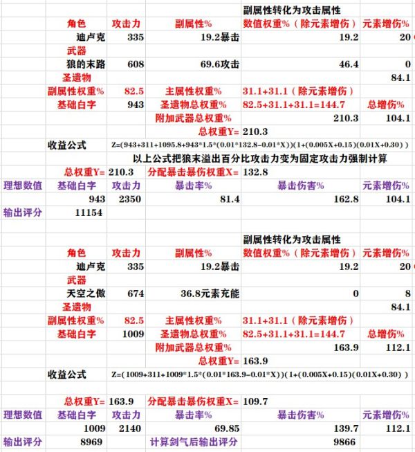 本次所有圣遗物副属性采用5/9条计算中期毕业数据,也就是4条初始+5次强化词条中,有5条是暴击/暴伤/百分比攻击力就行。