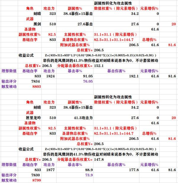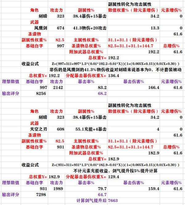 黑剑/匣里龙吟算上4件套提升/2+2提升,输出评分应该在9500左右,只是没有客观的研究过4件套提升率。刻晴自身机体提供的数值权重非常高,但是奈何两把五星武器的副属性都非常绝望。从这方面可见,刻晴的确因为武器问题损失不少原本高额的输出。风鹰剑副属性对雷伤刻晴基本用不到,而天空之刃副属性也一样,同时天空之刃的剑气也没有天空之傲的给力。黑剑和匣里龙吟武器基本攻击力一模一样,黑剑副属性为暴击好叠属性具有先天优势。黑剑的缺点是被动只加成普攻和重击,匣里龙吟缺点是面对不好染雷的敌人没有被动加成。