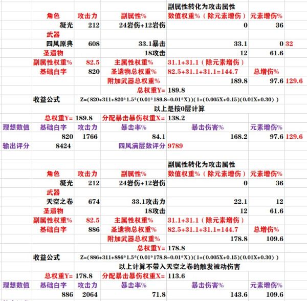 凝光自带24岩伤+天赋12岩伤,确实很厉害。可以看出对凝光这个机体来说,即使是0层四风原典也只比天空之卷弱一丢丢,四风原典基本属性全面胜出,还更简单的就能搭配属性。