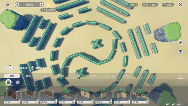 首先摆中间的圆圈(16面墙),注意一定要摆到正中央,否则边上放不了别的东西了。
