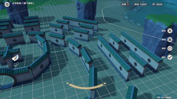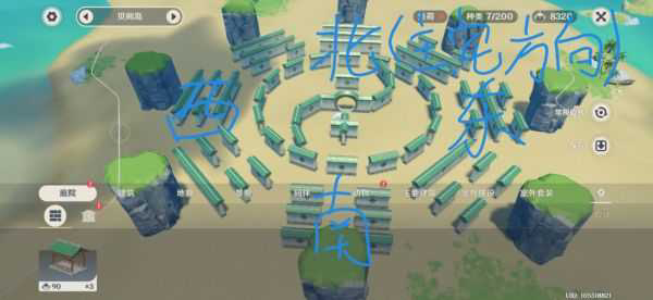 然后是八个卦,利用圆上的墙来格线吸附调整方向就行,注意摆放时的间距