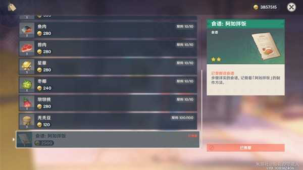 食谱获得方式:阿如村NPC · 阿扎莱处购买获得