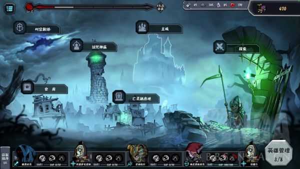 主要的互动区域是仓库的物品存储、主城的天赋升级和酒馆的英雄招募,值得一提的是英雄初始上限仅仅为8,而基本上各个队都需要配一名奶妈,其他职业各带一个的话需要3-4个队伍才能满足需求,所以需要尽快的用资源开启更多招募名额(在英雄管理中),而不是过早的将其投入到主城升级