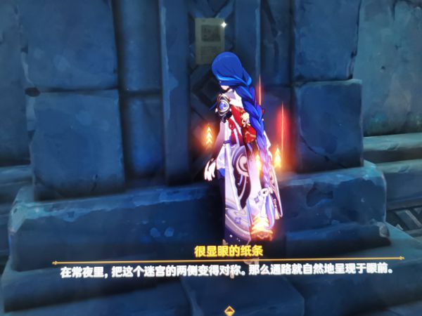我们开启大门后直接进入看见“华丽的宝箱”,华丽的宝箱上方纸条提醒我们完成此迷宫需要“对称”