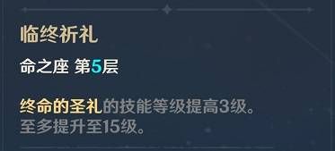 「终命的圣礼」释放时可以联动触发「罗莎莉亚」的固有天赋「暗中支援的黯色」,释放「终命的圣礼」时基于「罗莎莉亚」属性面板暴击率*15%增加其他队友的暴击率,持续10秒,最高不超过15%。