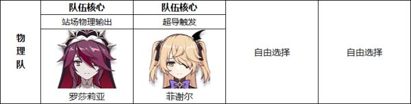 以「罗莎莉亚」为站场物理输出的队伍基础搭配。