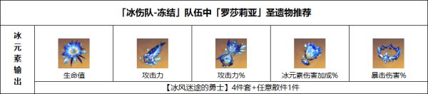 这个是以「罗莎莉亚」为站场冰元素输出的队伍搭配。