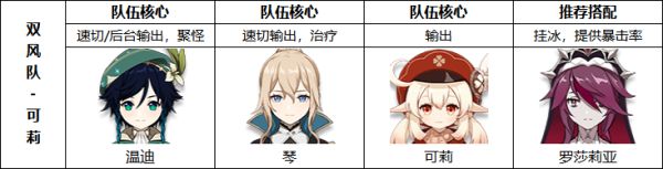 这个是以“双风可莉”配上「迪奥娜」修改而来的队伍搭配。
