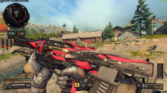 同样是两个变种皮肤,不过这次第一个翻译勉强对了,要求5个两个以上的快速击杀,完成后获得机密迷彩,然后完成50杀,获得钱街迷彩,第一个为半动态迷彩,5杀之后狼眼发光,第二个为全动态,底色为暗物质式紫色流动,5杀之后白色猴头变黄,底色变绿,同时猴头本身重复吃糖的动作。
