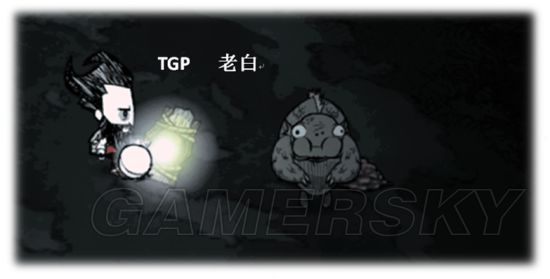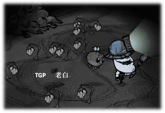 冷知识解析:大家都知道老白我最爱敲鼹鼠了,而且鼹鼠可以拿来做黑暗料理鳄梨酱(地鼠肉),可以用来做鼹鼠帽和雨帽,可以用来刷矿石(把鼹鼠洞移植到用围墙围起来的一定范围内,方便管理,在不杀害鼹鼠的前提下,挖掘鼹鼠洞,等待鼹鼠重新挖洞后反复操作,这是一种缓慢的矿石再生办法,已经濒临被淘汰的处境)。我们要敲鼹鼠,一定要在远离洞口的地方操作,因为鼹鼠的血量禁不起你的第二锤子,除非你是饿扁了的沃尔夫冈(大力士瘦弱状态攻击力是0.5倍)或者你是柔柔弱弱的鬼女温蒂(伤害是0.75倍),除此之外的角色没有第二锤获得活鼹鼠的机会。等等,有人提到小丑了嘛,抱歉我根本不记得这个默剧演员,我和老麦一样不喜欢他。