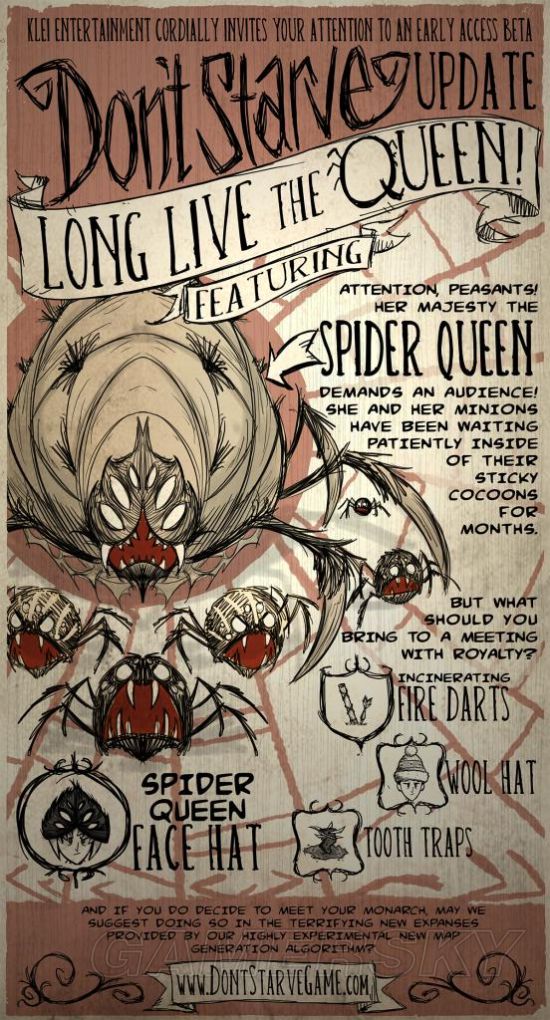 冷知识解析:蜘蛛女王帽只有两分钟的耐久,虽然比较珍贵,但是实用性很差。你戴上女王帽的瞬间,会吸引附近猪人兔人的仇恨,甚至跟随你的青年高鸟也会反口啄你。女王帽的用处,无非是在白天之外的时段,戴上女王帽,在蜘蛛矿区和蜘蛛森林引发蜘蛛的内战,从中渔利。当然也可以率众攻击驼鹅、蜂后等没有AOE伤害技能的BOSS。值得注意的是,蜘蛛女王会看破玩家的伪装,你无法安全靠近一个蜘蛛女王,除非你是蜘蛛人韦伯。