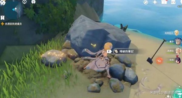 触发地点:这个任务是蒙德最难的一个隐藏任务啦~首先大家需要前往摘星崖,然后从摘星崖飞到东边的一个无人岛上(神像没有供奉满的话体力大概率不够,推荐使用重云+凯亚过去)。然后到达小岛之后使用元素视野在小岛的东侧找到一个石堆并找到一页笔记即可触发任务!