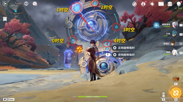 打完盗宝团,有大小罗盘,小罗盘控制大罗盘的指针,移动到相对应的时空,刚进入时为第1时空。正向旋转第2-4时空,逆向旋转第0时空。