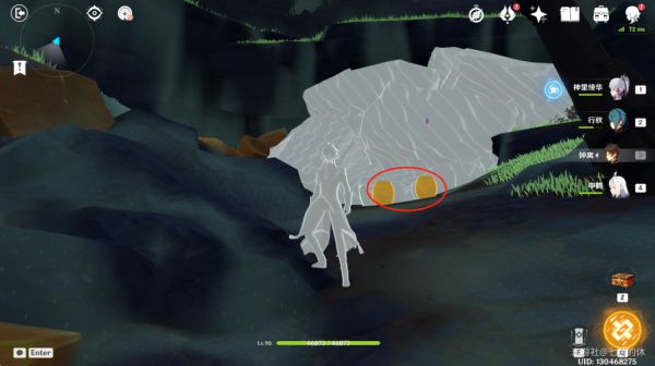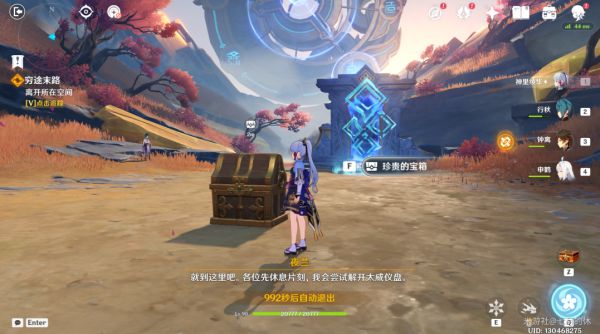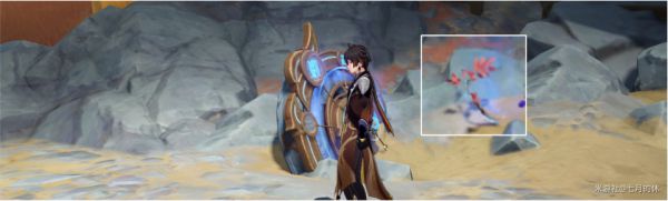 在调查点背后,也就是时空门的对面,用元素视野可以看到可以炸开的石头,前有两个炸药桶,引爆,在第二时空这个位置有宝箱。