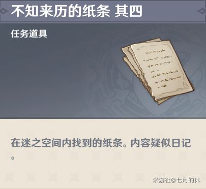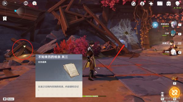 在周围找到调查点,获得任务道具【不知来历的纸条·其一】