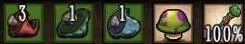 蘑菇陷阱(通过三个红蘑菇合成):伤害350,范围发光。