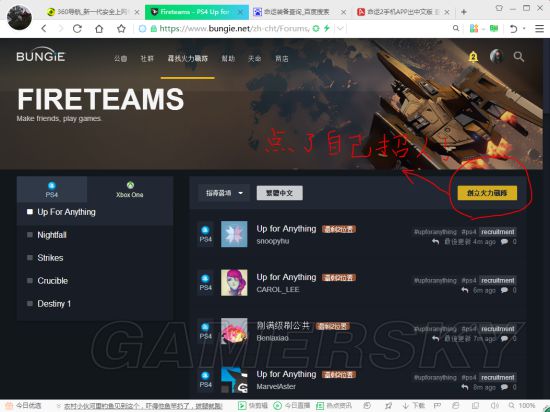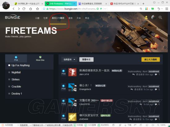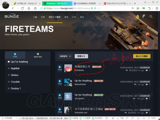 1.首先上棒鸡官方中文网站:,并登录你的相应PSN或者XBOX、PC账号,登录以后上方的寻找活力战队菜单,并按下面的图来操作。